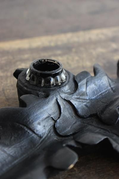 マットな黒と葉模様が美しいお品です。