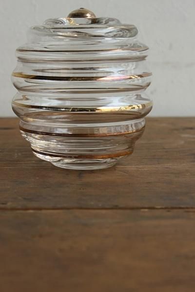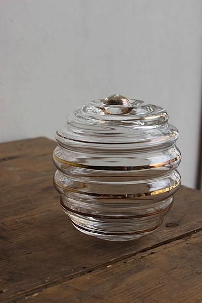 松ぼっくりのようなフォルムが印象的なガラスのボンボニエール。