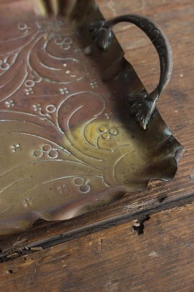 真鍮メッキは色褪せ、ところどころ銅色が覗き、