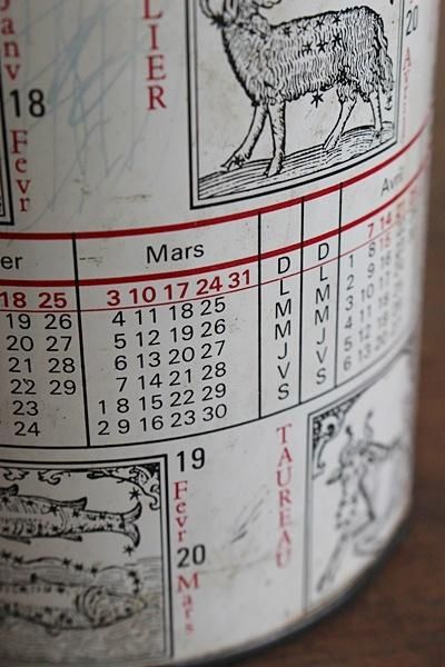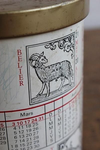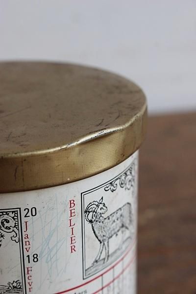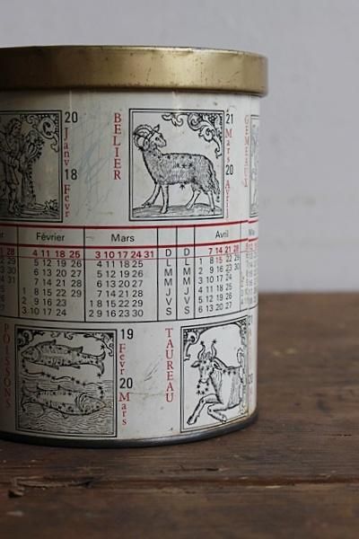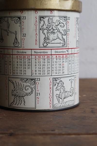 星占いの模様が描かれた缶。