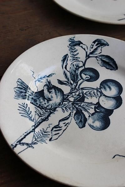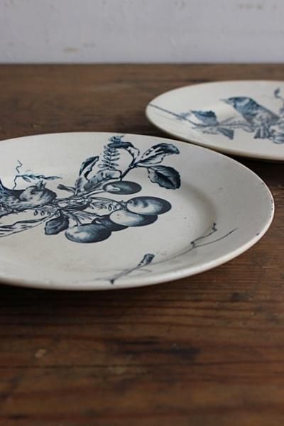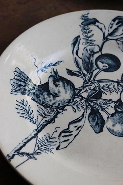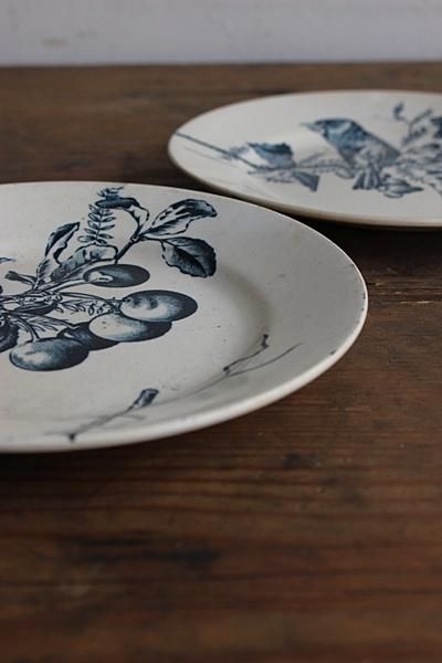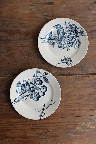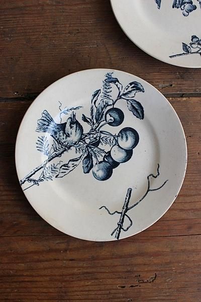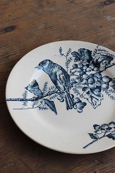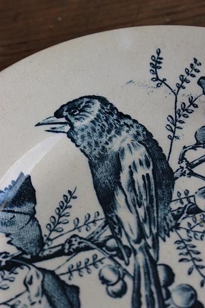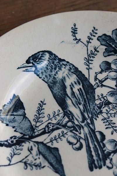 ショワジー・ル・ロワ窯らしい穏やかなタッチで鳥が描かれた絵皿。